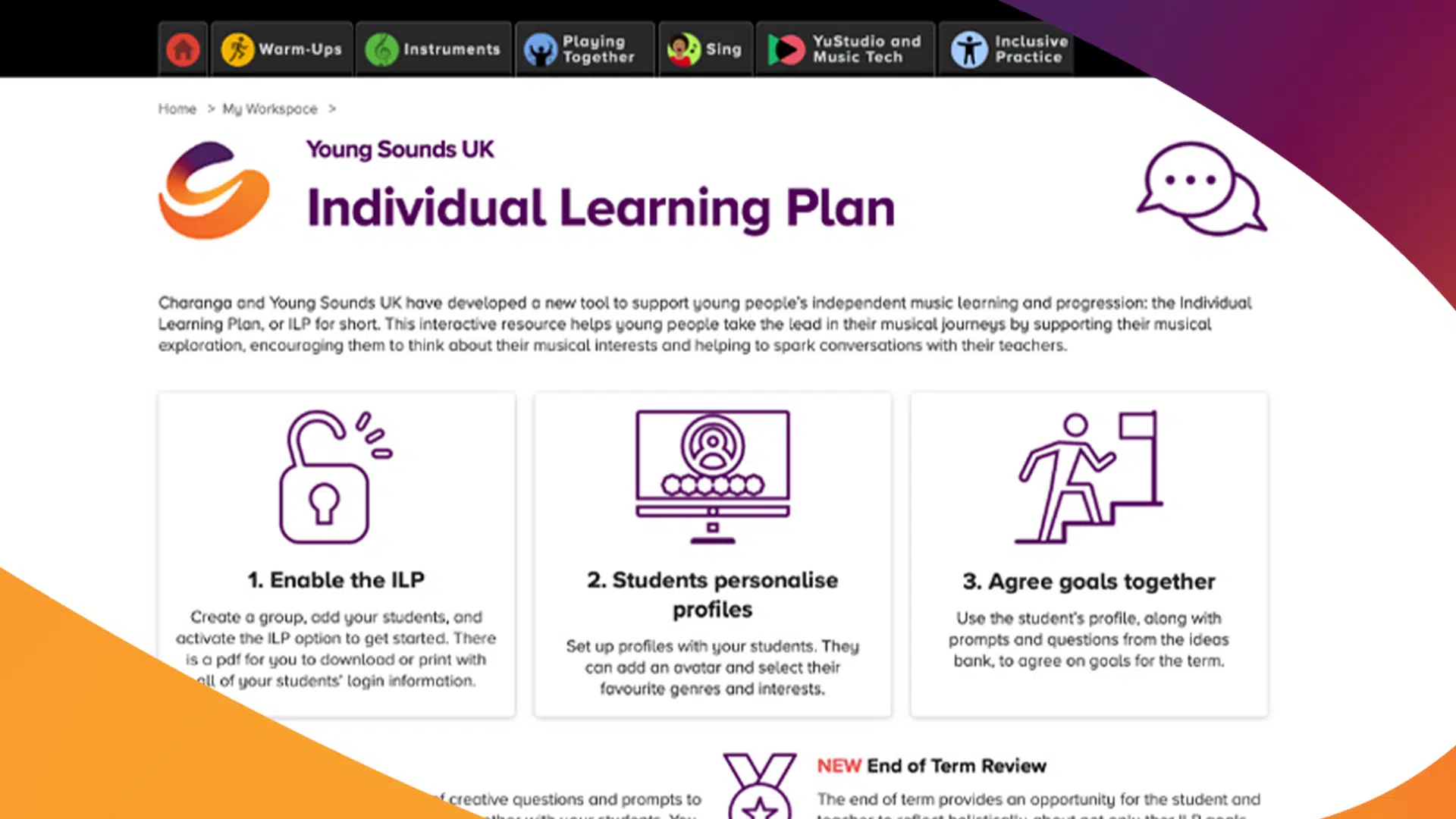 Young people access the ILP – alongside all other content and creative tools their teacher shares with them – in Yumu, the Charanga platform’s student-facing learning space. All students with Yumu also have access to YuStudio, Charanga’s DAW; our Quickbeats drum machine; and Music Notepad, our scoring and notation software for beginners.